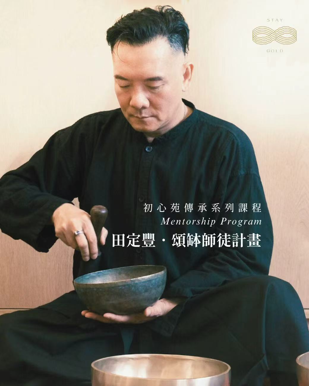 同時,他致力於聲音療癒的教學與推廣,不僅創建台灣第一套系統化的頌缽線上課程,更成立「初心苑」療癒品牌,打造頌缽證照系統。