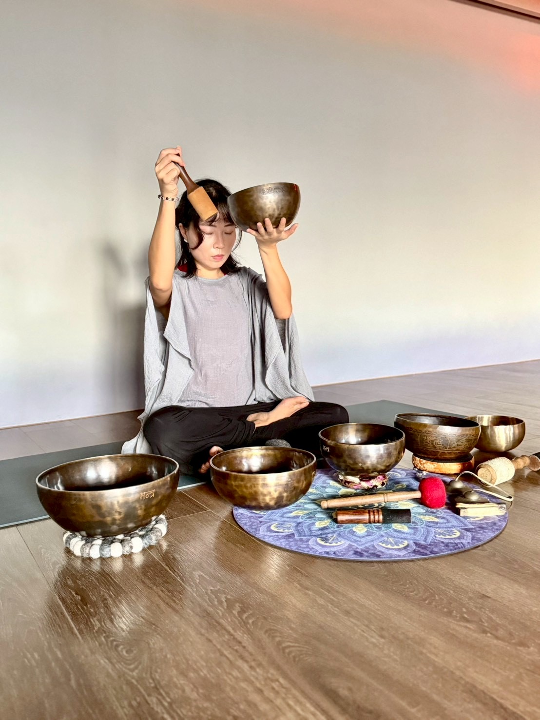 本課程包含70分鐘的呼吸靜心引導、結合頌缽的瑜伽體位練習,並以20 分鐘的大休息式音療浴收尾,溫和釋放肌肉緊繃與累積的情緒壓力,帶領身心進入深層放鬆與自我修復。你將喚醒自我覺察與內在療癒力,在這個快速而喧囂的世界裡,保持安定、堅毅、清明、從容。